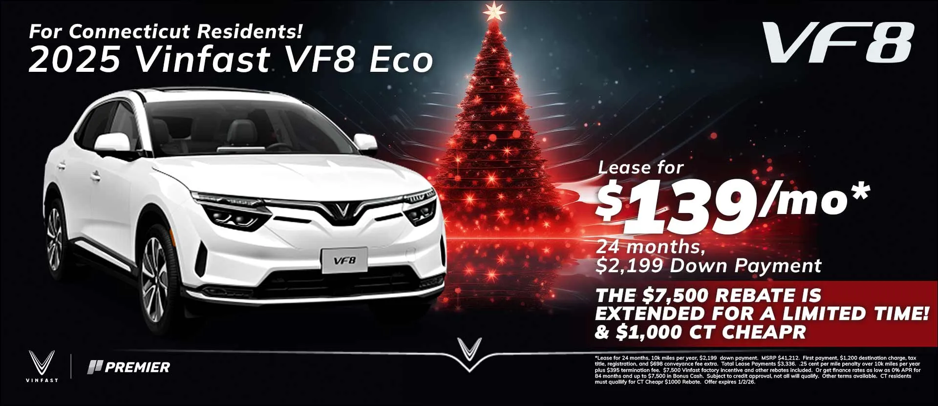 At Premier VinFast, not only can you browse inventory online but you'll experience the Premier Buyers Benefits Package including our Lifetime Powertrain Warranty with unlimited miles or for as long as you own your VinFast. We even offer purchase options with home delivery.